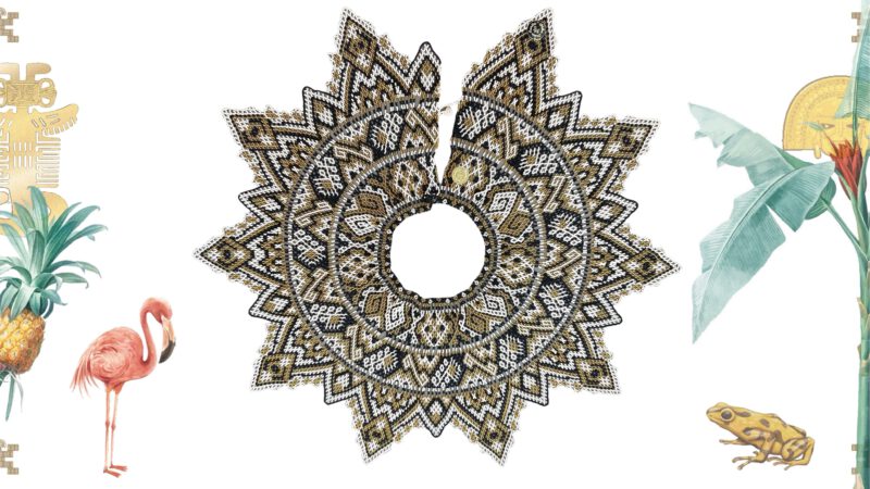 Collar tejido artesanalmente por indígenas Embera Chamí en pedrería y abalorios.